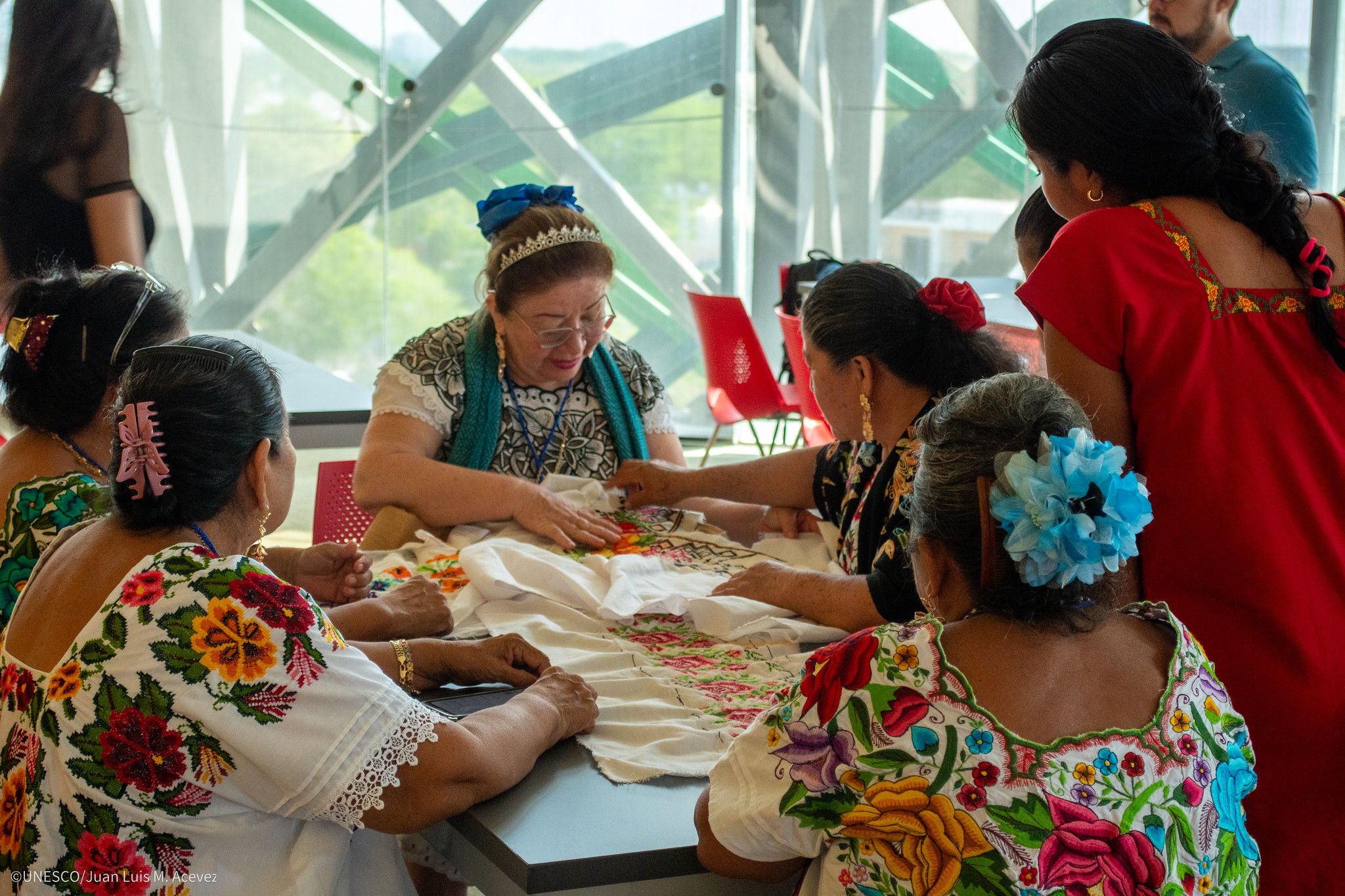 en escuelas y espacios comunitarios. Estas medidas buscan preservar el Bordado Maya Yucateco como Patrimonio Cultural