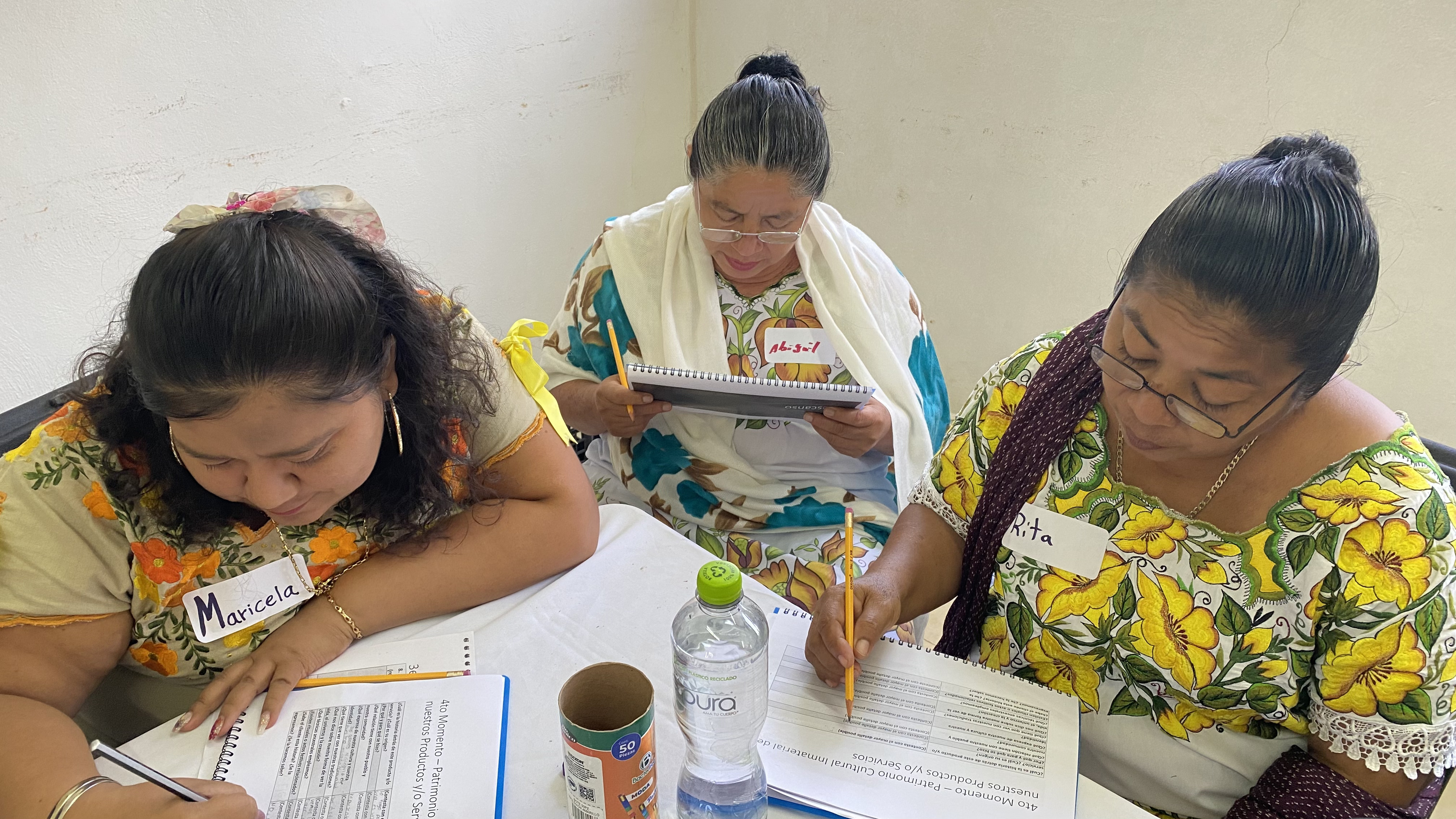 Durante los talleres de patrimonio cultural inmaterial, las bordadoras realizaron ejercicios para identificar y